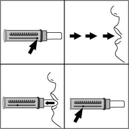 - Close lips tightly around the mouthpiece. In one breath, blow as hard as you can.
