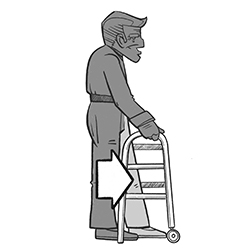 - Step forward with your weaker leg, so the foot is at the back of the walker.