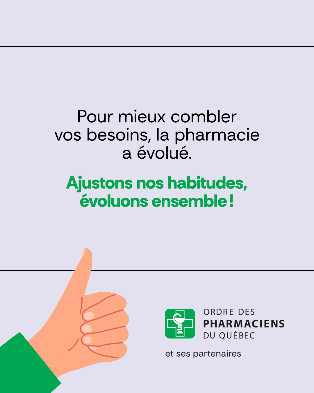 This year, we are especially proud to highlight the new awareness campaign launched by the Ordre des pharmaciens du Québec. The campaign emphasizes the continuous evolution of the profession, which has adapted to better meet the needs of the public.