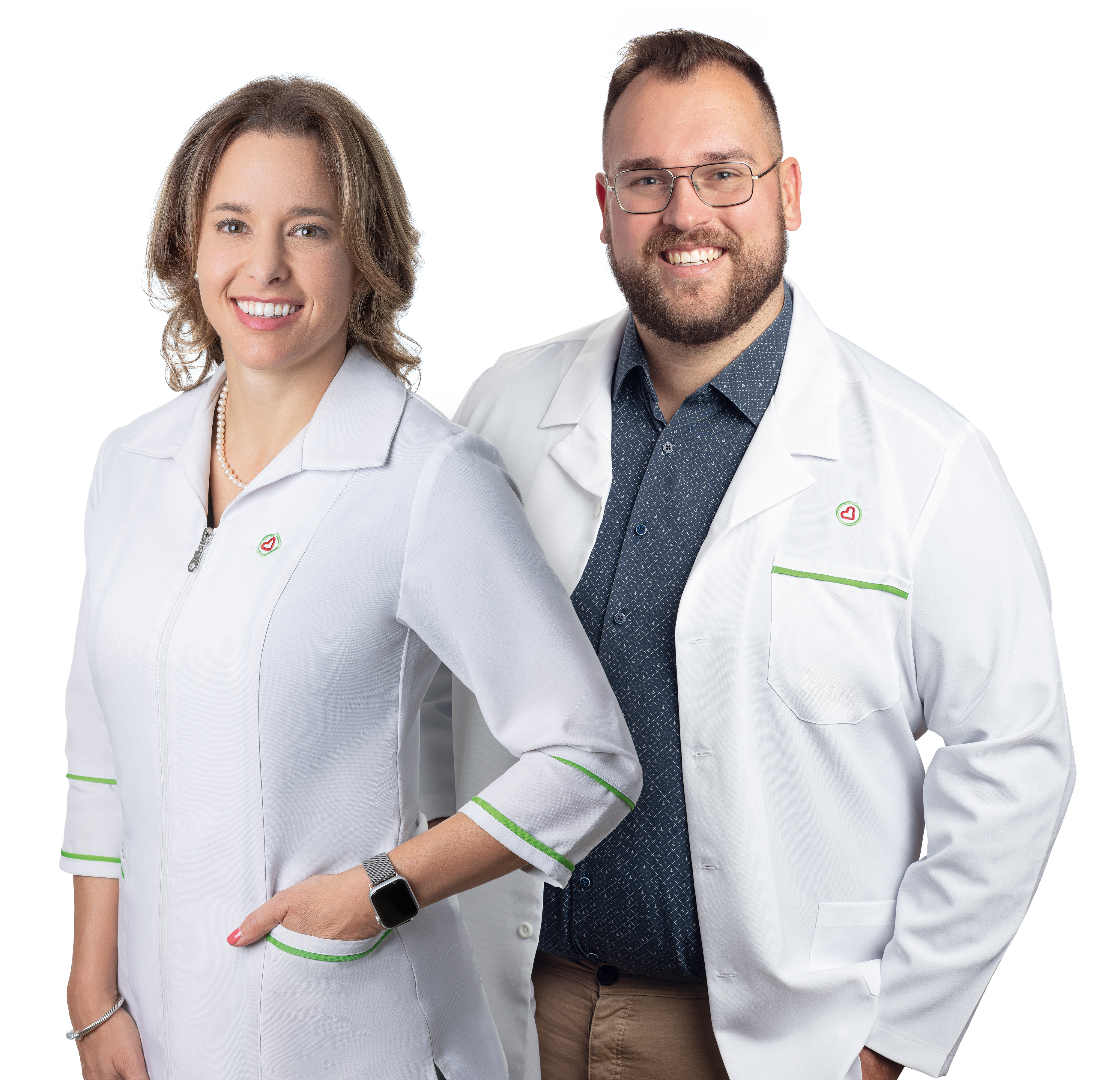 Stéfanie Ouellet and Charles-Alexandre Tessier share common values: whole-person health, well-being, and the importance of healthy lifestyle habits. They also share a unified vision of community pharmacy as an accessible first-line healthcare resource, committed to personalized patient support.