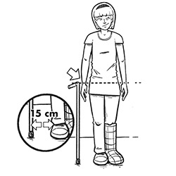 - Placez la canne debout à environ 15 cm à côté de vous en la faisant reposer sur le sol;