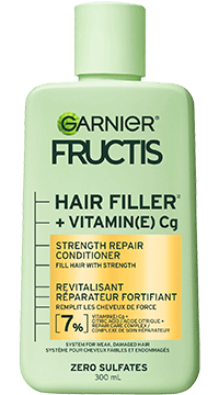 Dernière étape, de votre routine capillaire réparatrice, l’utilisation du Sérum Fructis Hair Filler + Vitamine Cg permet de protéger des dommages offrant jusqu'à 79 % de force en plus à vos cheveux et 4 fois moins de casse avec une utilisation continue. Vos cheveux seront revitalisés, visiblement lisses et en bonne santé. Pour de meilleurs résultats, ne rincez pas vos cheveux après avoir appliqué le sérum!