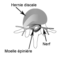 La colonne vertébrale est composée de 33 petits os articulés appelés vertèbres. Les vertèbres sont séparées par des « coussins amortisseurs », les disques intervertébraux. Ces disques intervertébraux servent à amortir les chocs, à supporter la pression et à donner sa souplesse à la colonne. Ils sont constitués d'une bordure fibreuse et d'un centre gélatineux. Parfois, un disque intervertébral s'affaiblit. La bordure fibreuse du disque peut alors se fissurer et le centre, qui est plus mou, déborde de sa position normale. C'est ce qu'on appelle une hernie discale.