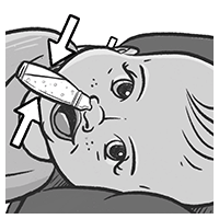 - Refaire les mêmes étapes dans l'autre narine, après avoir tourné l'enfant sur l'autre côté s'il était sur le côté.
