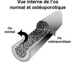 L'ostéoporose est une maladie au cours de laquelle il y a une détérioration des os. Ceux-ci deviennent plus poreux en perdant de leur masse. Les os deviennent alors plus fragiles, ce qui augmente le risque d'avoir une fracture.