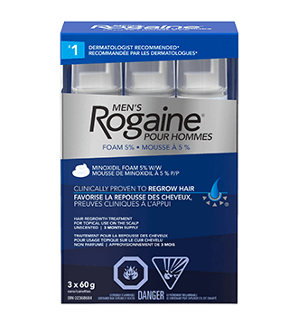 - La mousse pour hommes ROGAINE® favorise la régénération capillaire et la repousse des cheveux.