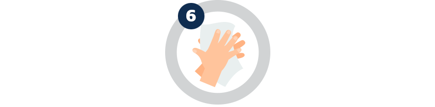 Bien se sécher les mains avec un séchoir électrique ou une serviette en papier et fermer le robinet avec cette même serviette. Éviter de toucher à des objets souillés en sortant de la salle de bain.