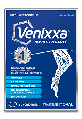 Venixxa est un produit de santé naturel qui s’avère une option de traitement reconnu et efficace dans le soulagement des symptômes reliés à la maladie veineuse chronique légère à modérée.