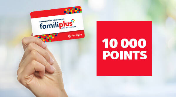 4. Un total de 25 lots de 10 000 points Familiplus d’une valeur de 100$ chacun. Le tout d’une valeur de 2,500$